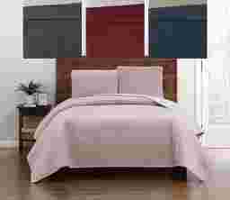 The Villiard comforter set features a new twist on plush bedding which combines crystal velvet face cloth with a coordinating colored pick stitch on the quilt and shams to give you outstanding warmth and fashion for your bedroom. The full/queen set includes: one full/queen quilt 90x90 inches with two standard shams 20x26 inches with a fold enclosure. Both the sham and the quilt have a pick stitch for added surface texture. Face of the quilt and sham is a 100% polyester crystal velvet fabric with pick stitch surface texture. The reverse is a coordinating solid color 100% microfiber polyester fabric and the item is filled with 100% polyester fiber filling. This item is machine washable; however, please make sure equipment is large enough to allow the item to move freely in wash.