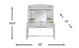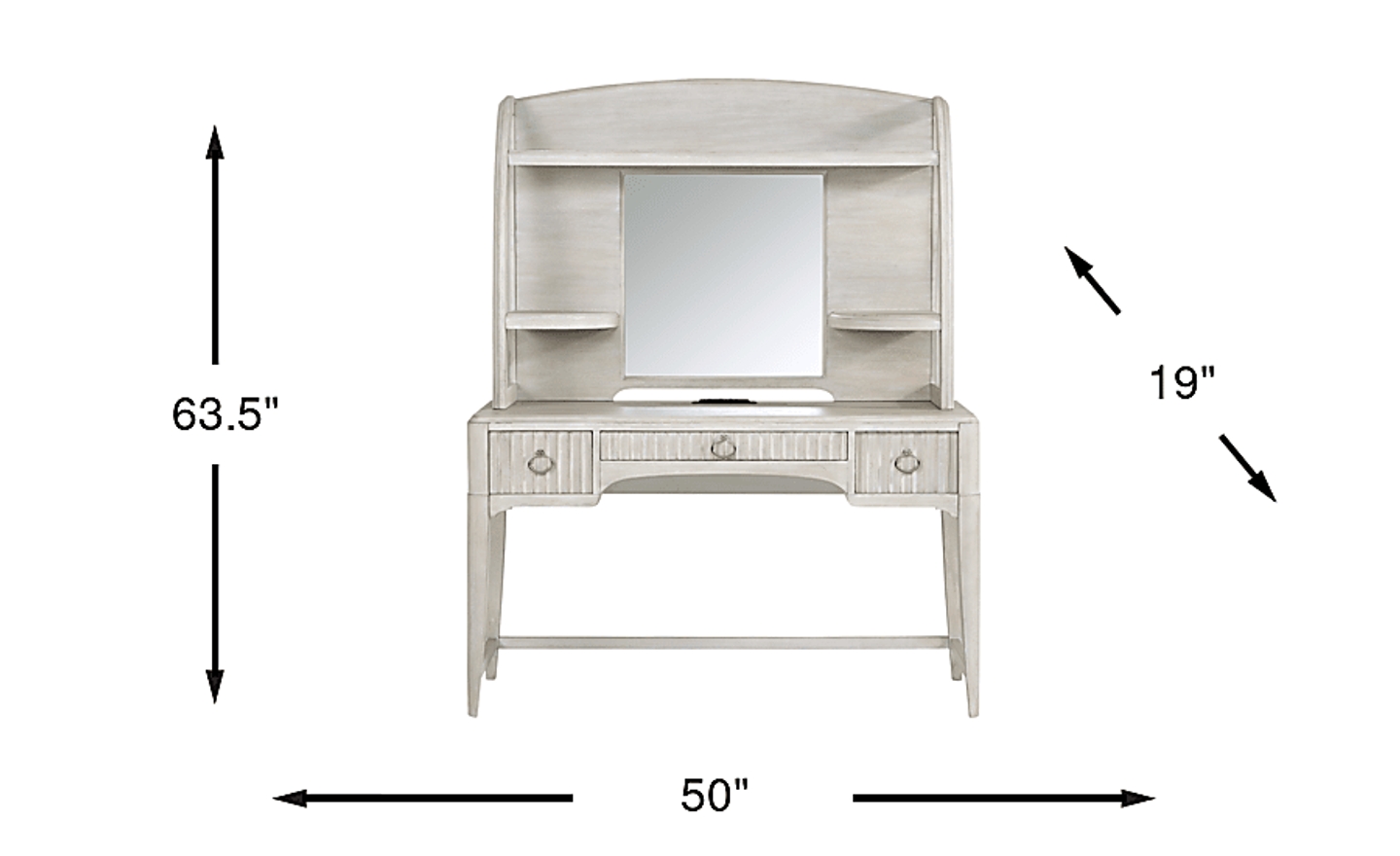 Like most kids, the Vivien collection is the perfect alchemy of equal parts daring and darling. Crafted to have a pearlized white effect with wirebrush gray finish, this two piece set features a hutch with white LEDs that sits atop a desk. The desk is equipped with a pair of AC power ports, a USB-A port and one USB-C fast charging port. The hutch can be used with the desk or the coordinating dresser and has a vanity style mirror. Coordinating dresser sold separately.