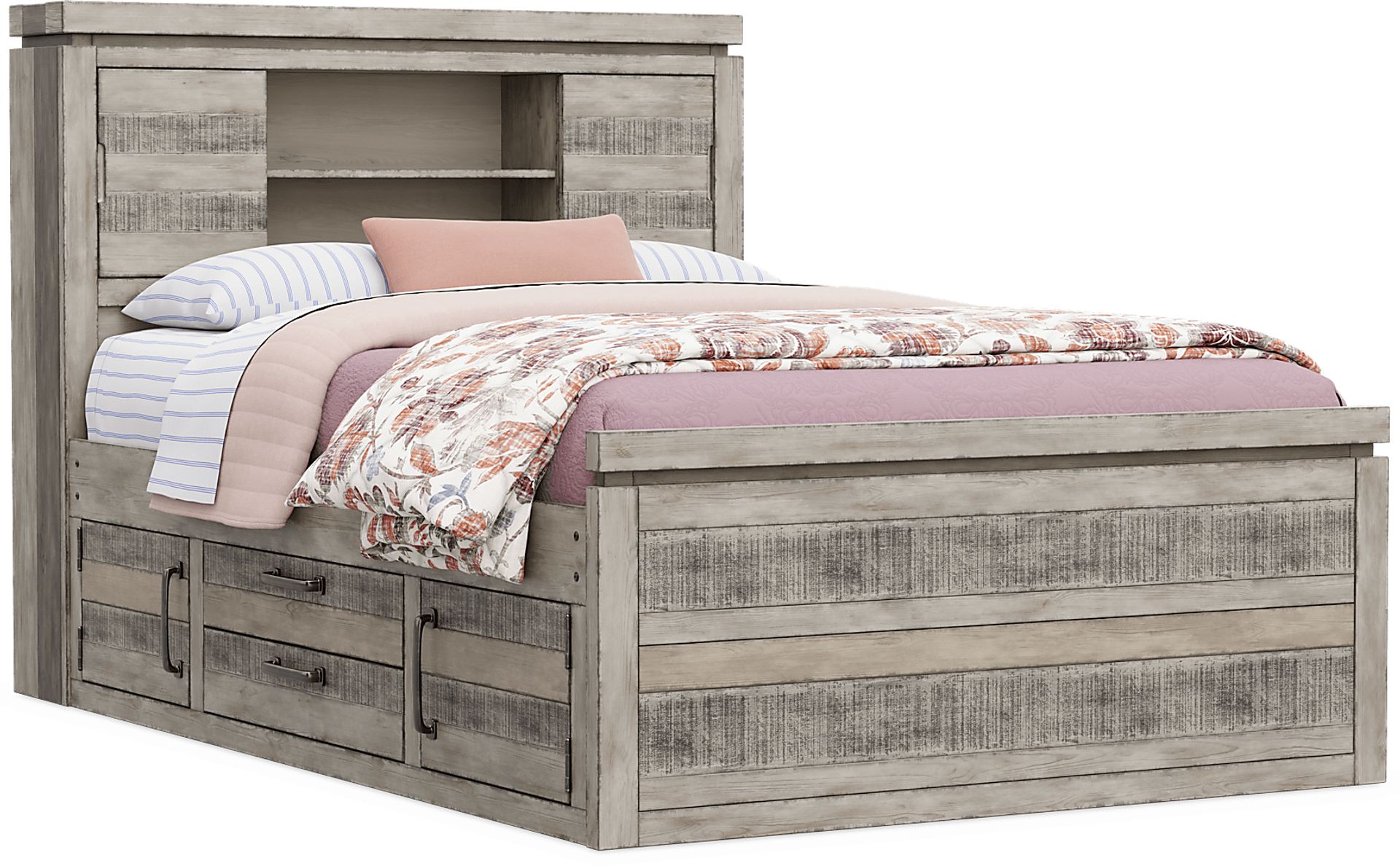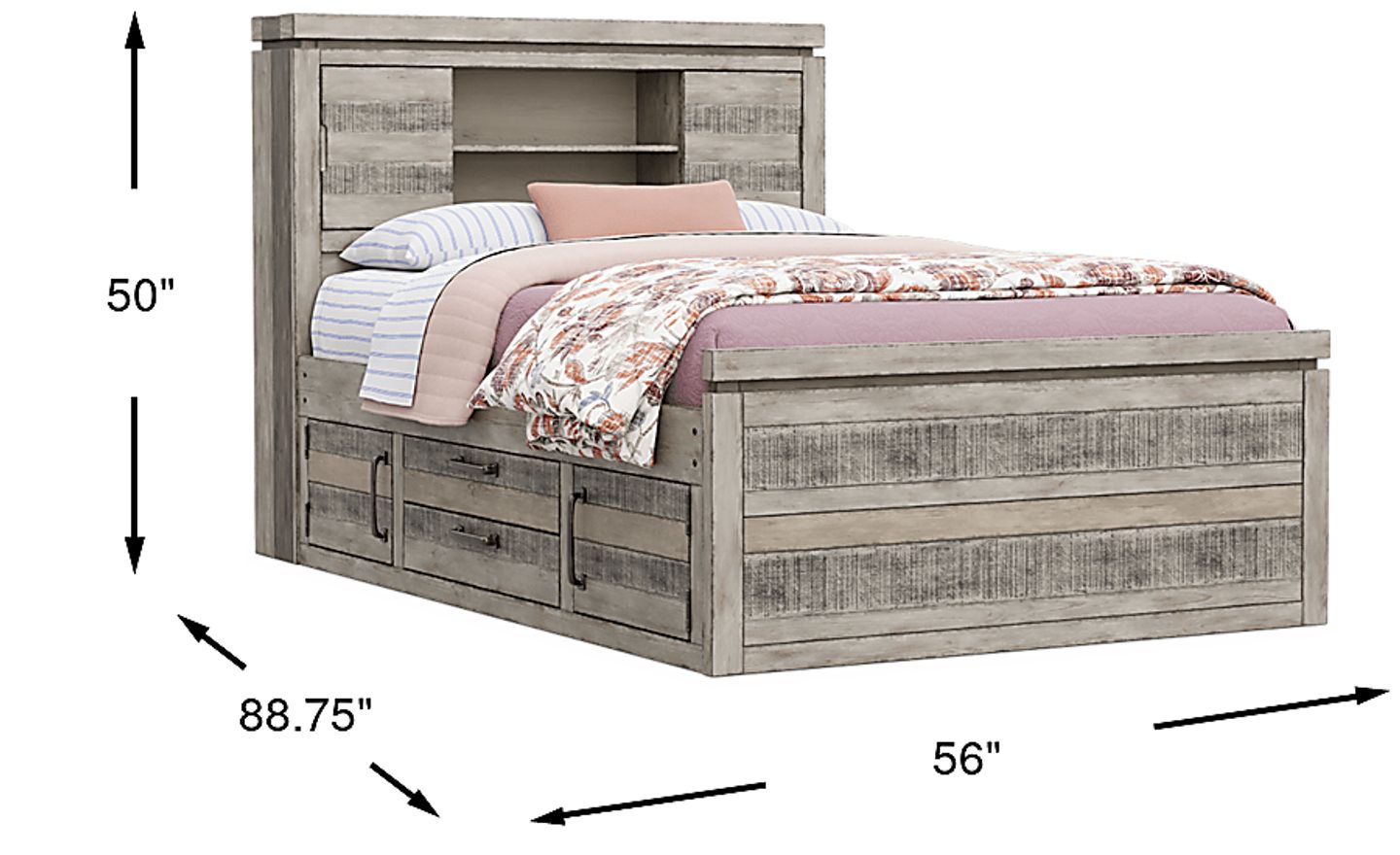 Kids Westover Hills Jr Gray Full Bookcase Bed With Storage Side Rail