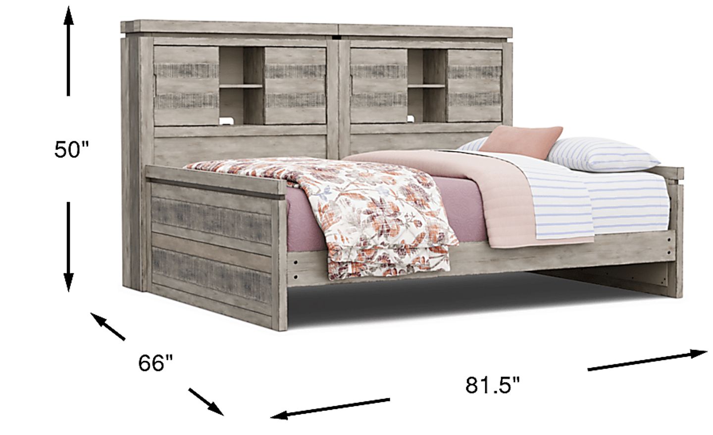 Give your child a stunning rustic retreat they'll love coming home to with the Westover Hills Jr. full bed. Crafted with pine veneers in a striking multi-tone gray finish, this bed features plenty of storage for books, pictures, and your loved one's other favorite items. Mattress and foundation (if required) sold separately.
