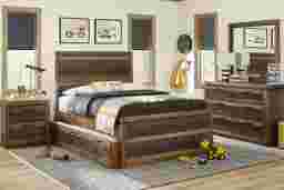 Give you child a stunning rustic retreat they'll love coming home to with the Westover Hills Jr. full bed. This stylish piece is constructed of pine solids and veneers in a striking multi-tone brown finish. The panel headboard features a horizontal wood plank design for a bit of industrial appeal. Underbed twin storage trundle available for purchase. Mattress and foundation (if required) sold separately.