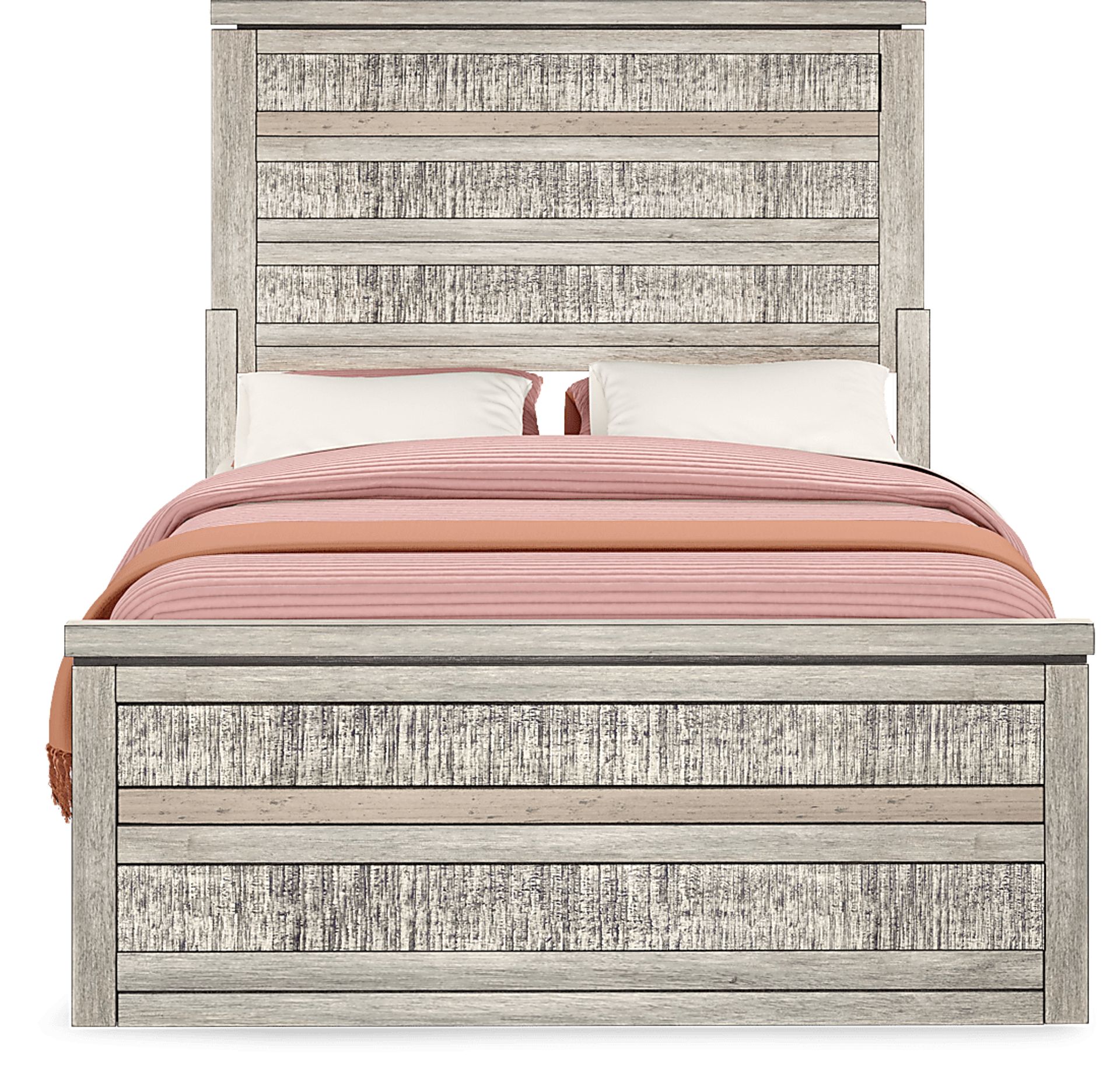 Give your child a stunning bed they'll love coming home to with the Westover Hills Jr. full bed. Crafted of pine solids and veneers in a striking multi-tone gray finish, this rustic full panel bed features a horizontal wood plank design on the headboard for a bit of industrial appeal. The bed includes a storage side rail with plenty of space for clothing and more. A twin storage trundle, designed to fit a twin mattress or stow larger items, offers an additional touch of functionality. Mattress and foundation (if required) sold separately.