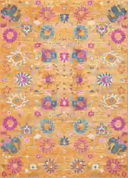 Imaginative flowers in lush, saturated pigments grace the Wildflower yellow 3'9" x 5'9" rug with a beautifully colorful presence. The artful palette mixes gold, fuchsia and denim blues on a patinated background of sunny yellow. Hints of antiquity in a modern interpretation makes this stunner a versatile statement piece for any room in your home. 100% polypropylene.