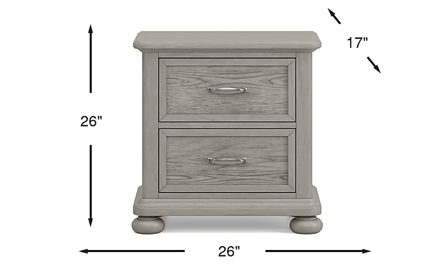 Add fun style and extra storage space to your child's bedside with the Woodland Adventures nightstand. This piece features two dovetail drawers with decorative molding frames around the fronts, ball bearing glides and decorative bun feet for an added touch of charm. Crafted of hardwood solids with elm veneers, the nightstand comes in a multi-step classic gray stained finish that is pleasing to the eye.