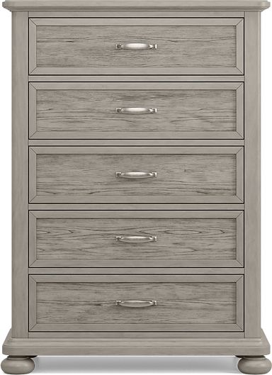 The Woodland Adventures nursery provides your little one with a safe and cozy space to sleep. Each piece is crafted of hardwood solids with elm veneers in a multi-step classic gray stained finish that is pleasing to the eye. The crib features a link spring, allowing it to adapt to your baby's development stages. The included toddler and full rails allow you to transform the crib into a toddler-sized daybed and later a full size bed to grow alongside your child. Also included in the set is a dresser with changing topper. Customer assembly required. Mattress and changing pad sold separately.