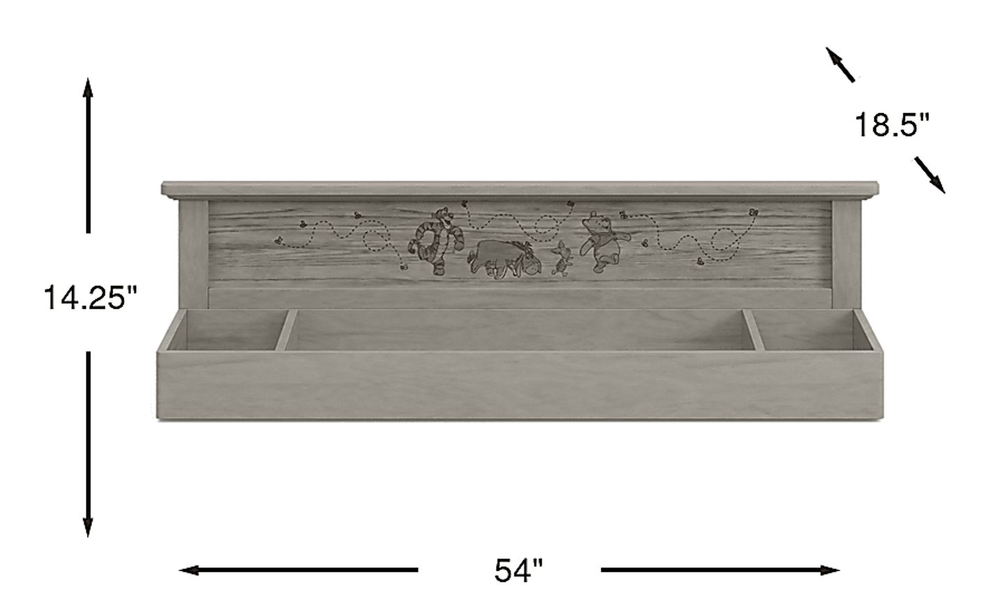 Complete your little one's bedroom space with the Woodland Adventures with Winnie the Pooh changing tray. Perfect for its matching dresser, this piece is crafted with elm veneers in a multi-step classic gray stained finish that is pleasing to the eye. Included is a removable art panel which features comforting illustrations of Winnie the Pooh and Friends.