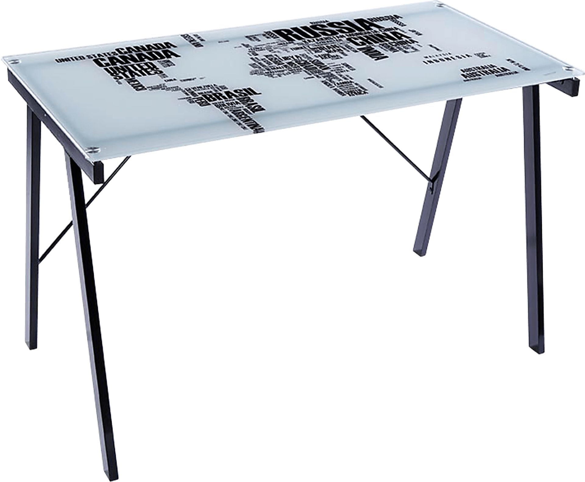 The World Map desk features a unique world map print to give any study space or dorm room a unique look. This desk features a tempered glass top and a sturdy steel frame.