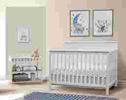 The Zivau 4-in-1 Convertible Crib was designed to blend rustic and contemporary elements, creating a versatile piece that grows with your child. It features a natural New Zealand pine wood construction, clean lines and slatted details to combine the charm of a farmhouse style with a modern touch. Toddler Guardrail sold separately. Customer assembly is required.