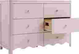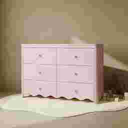 Introducing the Zoana 6-Drawer Double Dresser. Designed with graceful waves and softly rounded posts, this dresser brings timeless European-inspired style to your child's room. Six spacious drawers provide plenty of storage for clothes, blankets, and all the little essentials that come with growing up. Crafted from durable wood and wood composites, it's built to last through every stage of childhood and beyond. The Zoana also includes a thoughtful interlocking drawer system and anti-tip kit to help keep your little one's space safe. Backed by a 1-year limited warranty, this dresser is where beauty, function, and peace of mind come together. Customer assembly is required.