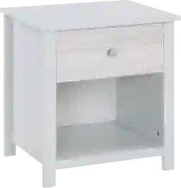 This nightstand is designed for versatility, featuring a single spacious drawer for concealed storage and an open storage cubby below. This combination allows children to keep "treasures" tucked away while ensuring bedtime essentials like books, a tablet, or a water bottle are easily accessible from the bed.
