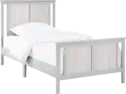 Most children are ready to transition from a crib or toddler bed to a twin bed between the ages of 3 and 5. This bed is an excellent choice for a first "big kid bed" as its standard twin dimensions (77" W x 41.75" D) provide ample room for growth while remaining accessible for younger children. The low-profile panel design and straight legs offer a stable, grounded feel that helps children feel secure during the transition.