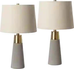 Make a bold statement in your living space with the Kildate Edge lamp, set of 2. This modern style lamp is crafted from smokey gray concrete and metal for a unique look that will draw attention to any room. The white linen lamp shade adds an additional layer of sophistication and timelessness. Standing 25 inches tall, this lamp is sure to make an impact in your home. Partial assembly may be required.