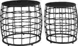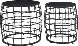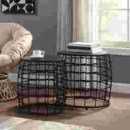 Revitalize your home with our Kimlly 2-Pack nesting drum table, a sturdy metal frame wrapped in woven resin, creates stunning visual texture that instantly adds a touch of casual sophistication to any space. A fusion of modern design and timeless Boho charm results in a relaxed décor style that says I'm home! The tabletop surface is made of rich, warm wood, providing the perfect contrast to the intricate hand woven detailing. It's not just beautiful; it's functional too, offering ample space for your books, magazines, or cherished decor items. Customer assembly is required.