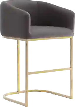 A hint of mid-century modern style that brings the chic and elegant flair to any home's decor. This Kimron stool is all kinds of wonderful. A clean-lined, curved, and comfortable seat, sits atop a shimmery gold semi-circle pedestal base. A metal footrest finishes the look, bringing added comfort to the leather-upholstered piece. Gorgeously well-served, in a perfect neutral tone for that touch of warm texture.