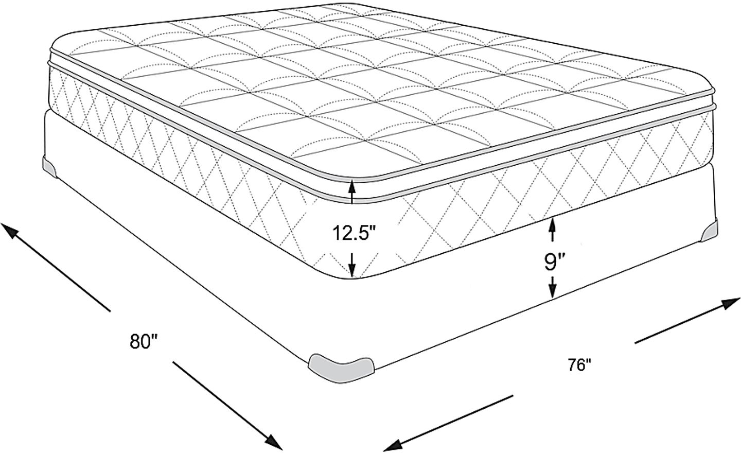 mattress: 80"l x 76"w x 12.5"h, foundation: 9"h