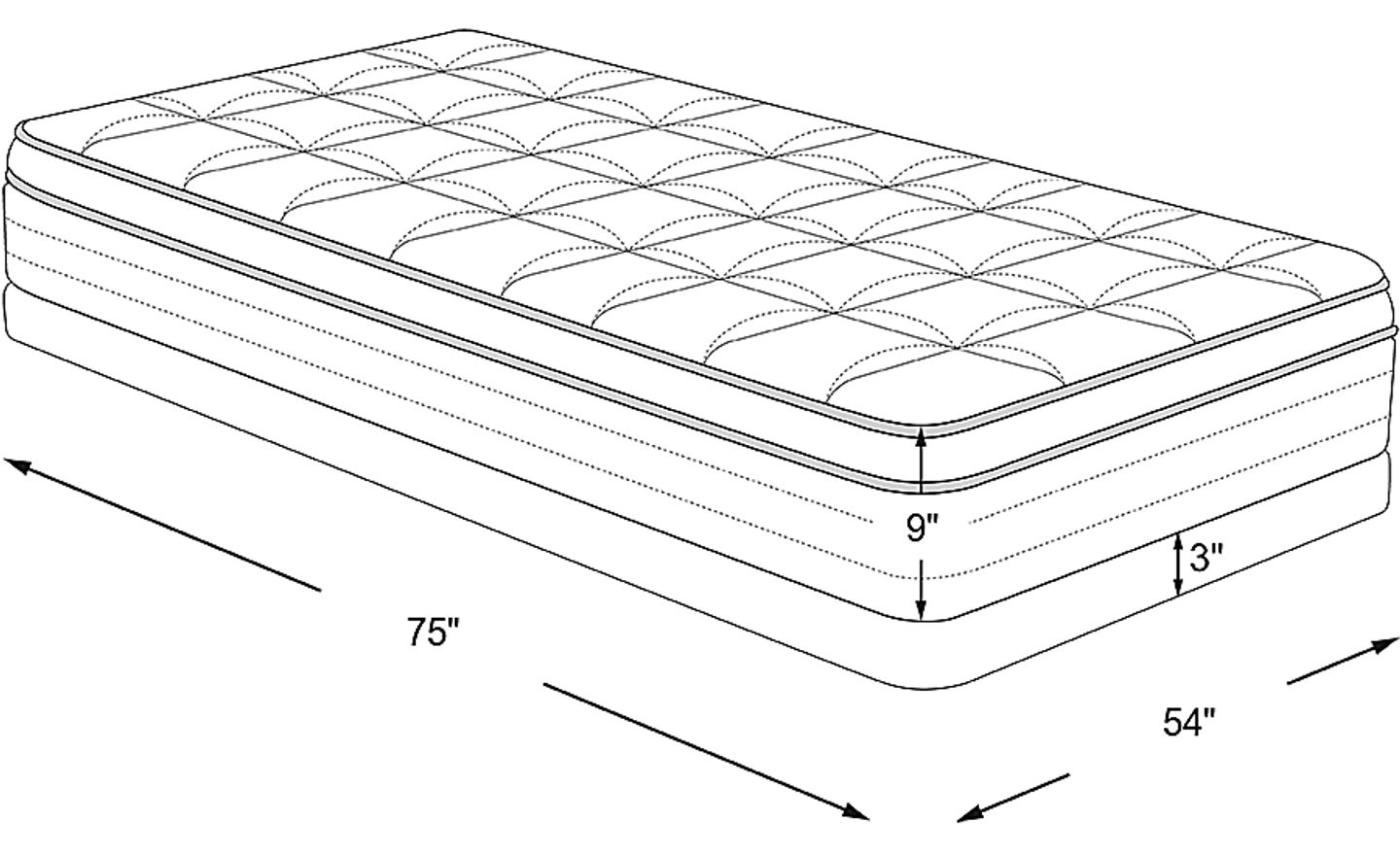 mattress: 75"l x 54"w x 9"h, foundation: 3"h