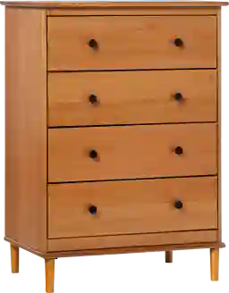 The Kingshall four drawer wood dresser creates the ideal spot for storing clothing in your bedroom, from your basic tees to your shorts and jeans. Made from responsibly harvested solid pine and manufactured wood from renewable forests, for a dresser you can feel good owning. The tapered legs give a Mid-century modern take on a traditional dresser, making it an effortless addition to your bedroom as it complements a plethora of styles, especially with transitional and modern styles. Four drawers provide enough room inside for your bedroom essentials, while you can use the top for your books, plants, and accessories or keep it clean for a minimal appeal. Customer assembly is required.