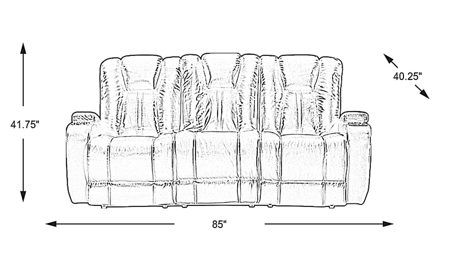 Welcome to your new home base. Offering innovative technology and unsurpassed comfort, the Kingvale power reclining sofa has everything you need to settle in and stay comfy for the long haul. Upholstered in luxuriously supple black fabric, this deluxe sofa features a storage compartment and lighted cup holder in each armrest in addition to a fold down center seat back boasting a burl finished tray with two cup holders, adjustable LED touch lighting, and pop-up media strip with dual A/C adaptors and dual USB ports. Power reclining headrests and footrests keep every inch of your body supported with the touch of a button. Whether you're watching TV, using a laptop or taking a nap, this luxury sofa has got you covered! 85% Polyester, 15% Polyurethane