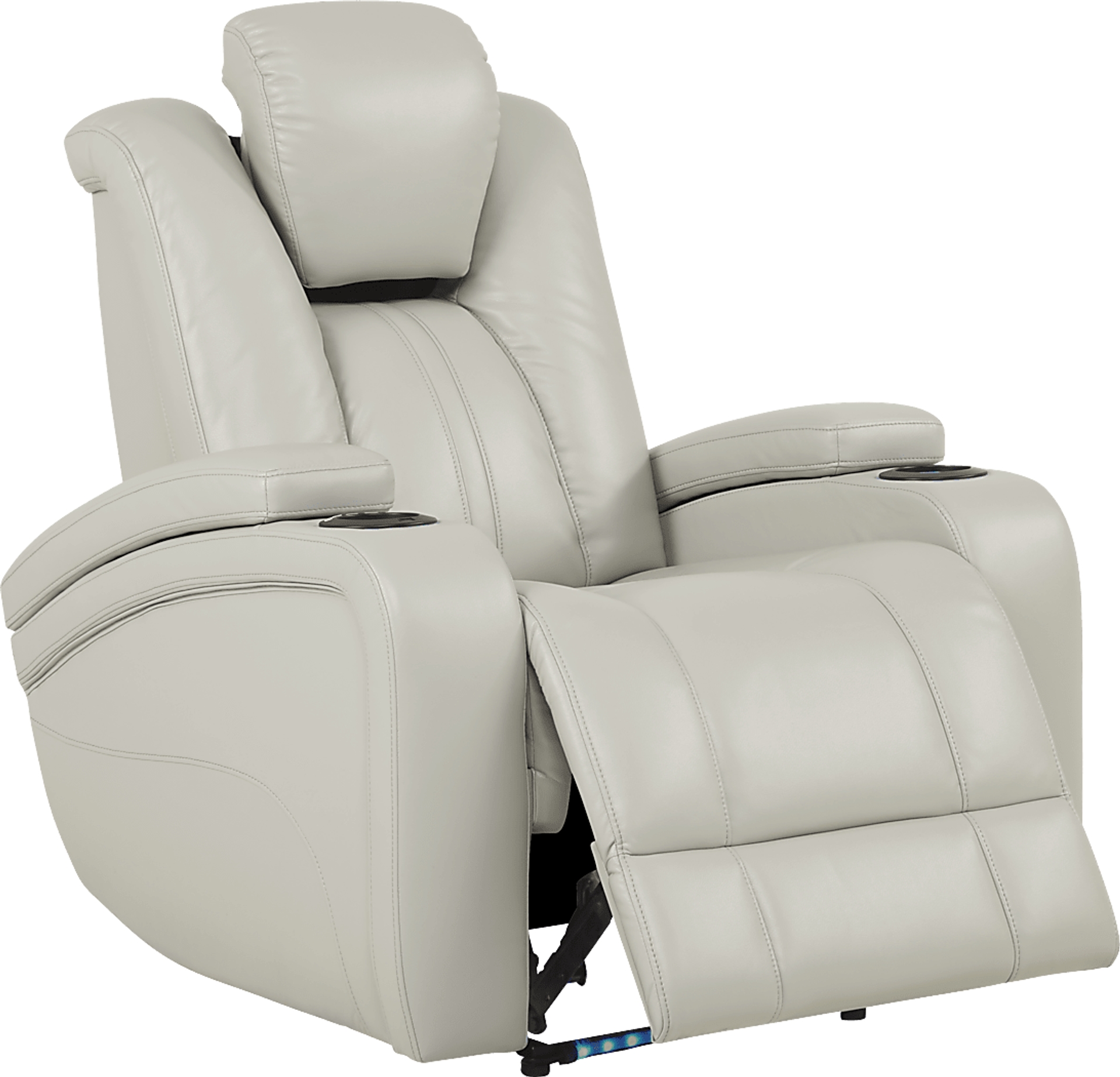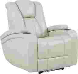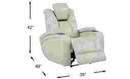 The Kingvale Court dual power recliner's sleek aesthetic and premium features add contemporary comfort to your living space. Upholstered in luxuriously supple platinum colored fabric, this modern recliner includes a cup holder with a USB port and hidden storage compartment in each armrest to keep all your essentials close at hand. A power reclining headrest and chaise style footrest provides full leg support at the touch of a button while adjustable LED floor lighting lends theater-style atmosphere. 27" extension when footrest is fully reclined. Allow 6" for wall spacing. Upholstery: 82.5% Polyester, 17.5% Polyurethane