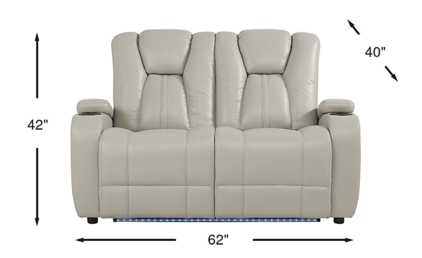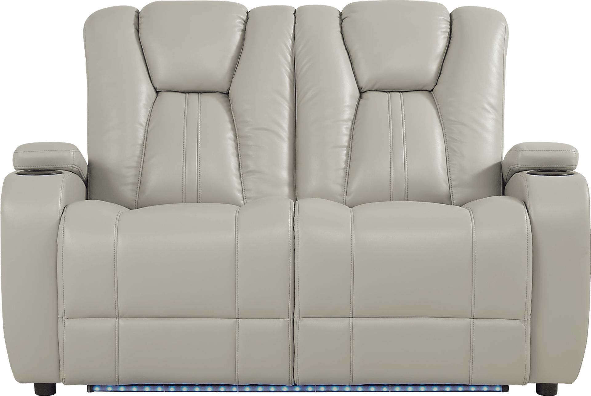 Upholstered in luxuriously supple platinum colored fabric, the Kingvale Court loveseat has a sleek, contemporary aesthetic that will update your living space. This plush seat for two features a lighted cup holder and hidden storage compartment in each armrest, keeping your essentials close at hand. Adjustable LED floor lighting offers subtle theater-style illumination. Upholstery: 82.5% Polyester, 17.5% Polyurethane
