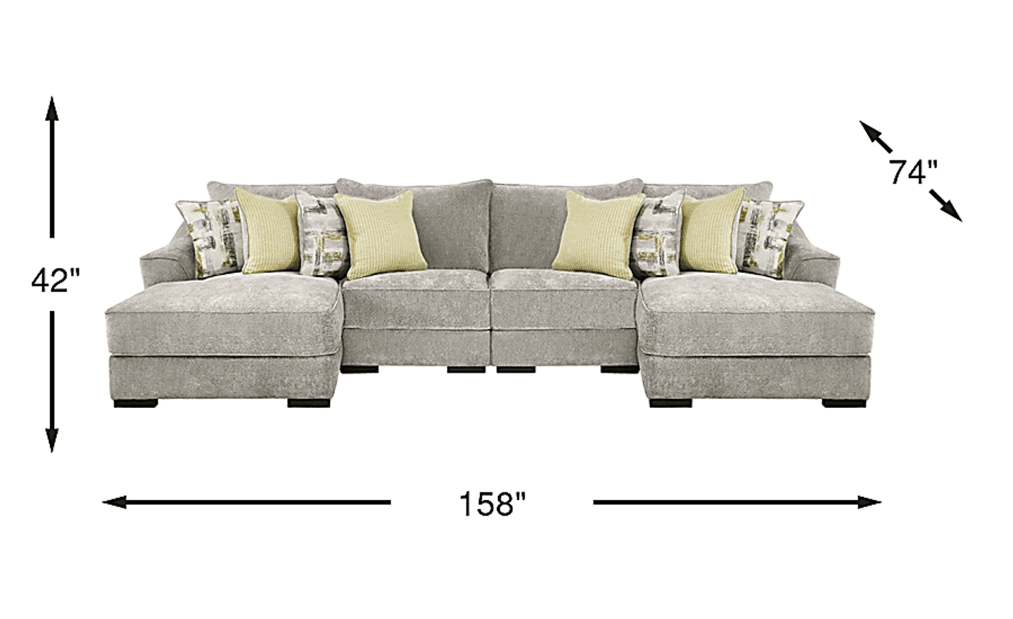 Measuring is the most critical step, especially for a piece with a substantial 158-inch width. To ensure a comfortable flow in your home, our experts recommend the "2/3 rule": your sofa or sectional should occupy approximately two-thirds of the wall it is placed against. Additionally, leave at least 18 inches of walking space between the sectional and other furniture, such as a coffee table. Because this unit arrives in four pieces, be sure to measure your entryways and hallways to ensure the delivery team can navigate the components into your space.