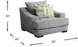 Clean, solid lines accompanied by the alluring pull of unremitting comfort make the Kinley chair the landing place every nap dreams about. Upholstered in plush woven chenille, this gray contemporary piece features stylish flare arms and a reversible seat cushion that clips on to the frame with D-rings, making it both sturdy and easy to clean. A channeled back and flare arms add a sense of the provocative while feather blend jacquard pillows and block legs in a black finish add an eye-catching contrast. Upholstery: 100% Polyester.