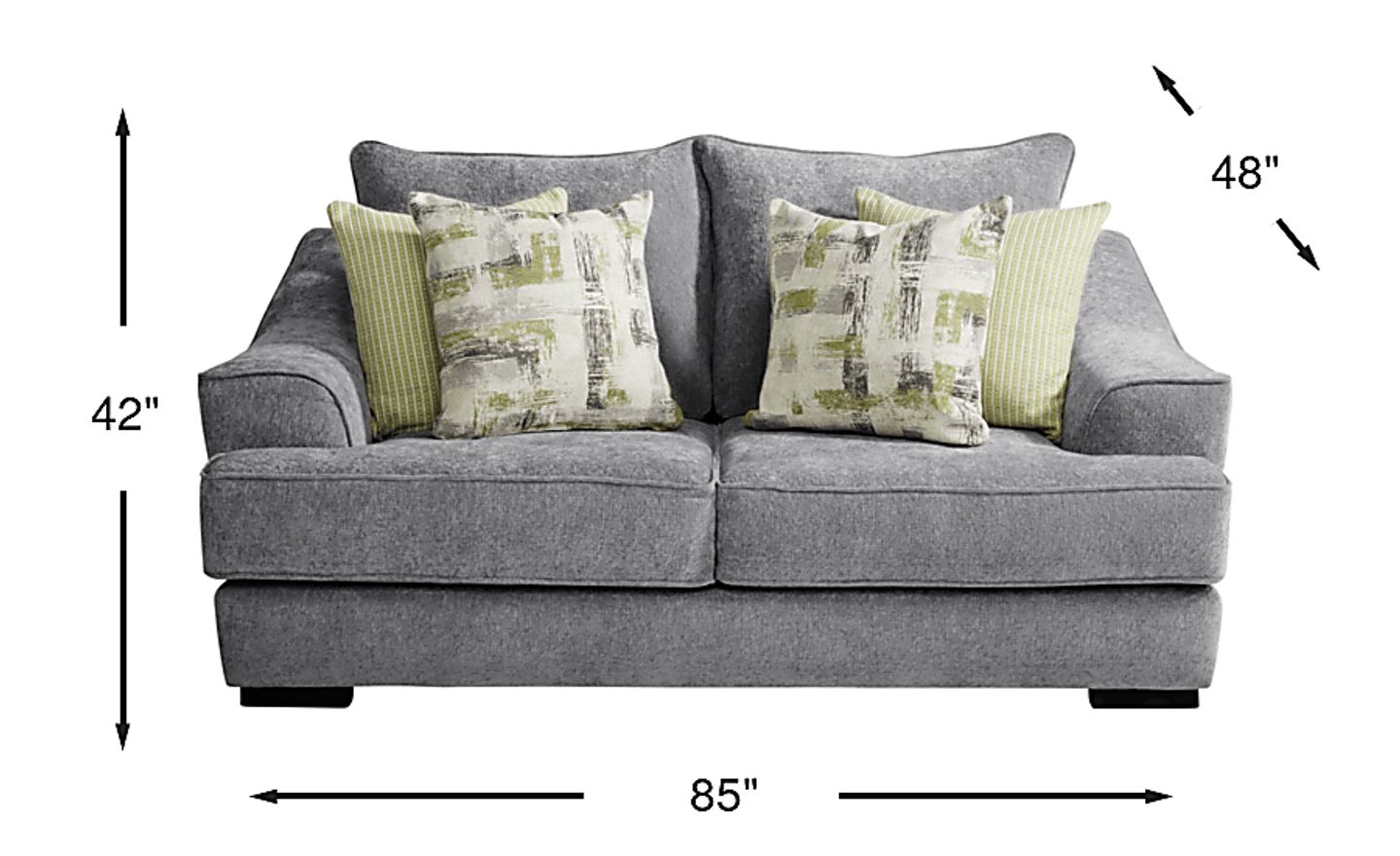 Clean, solid lines accompanied by the alluring pull of unremitting comfort make the Kinley loveseat the landing place every nap dreams about. Upholstered in plush woven chenille, this gray contemporary piece features stylish flare arms and two reversible seat cushions that clip on to the frame with D-rings, making it both sturdy and easy to clean. Channeled backs and flare arms add a sense of the provocative while feather blend jacquard pillows and block legs in a black finish add an eye-catching contrast. Upholstery: 100% Polyester.