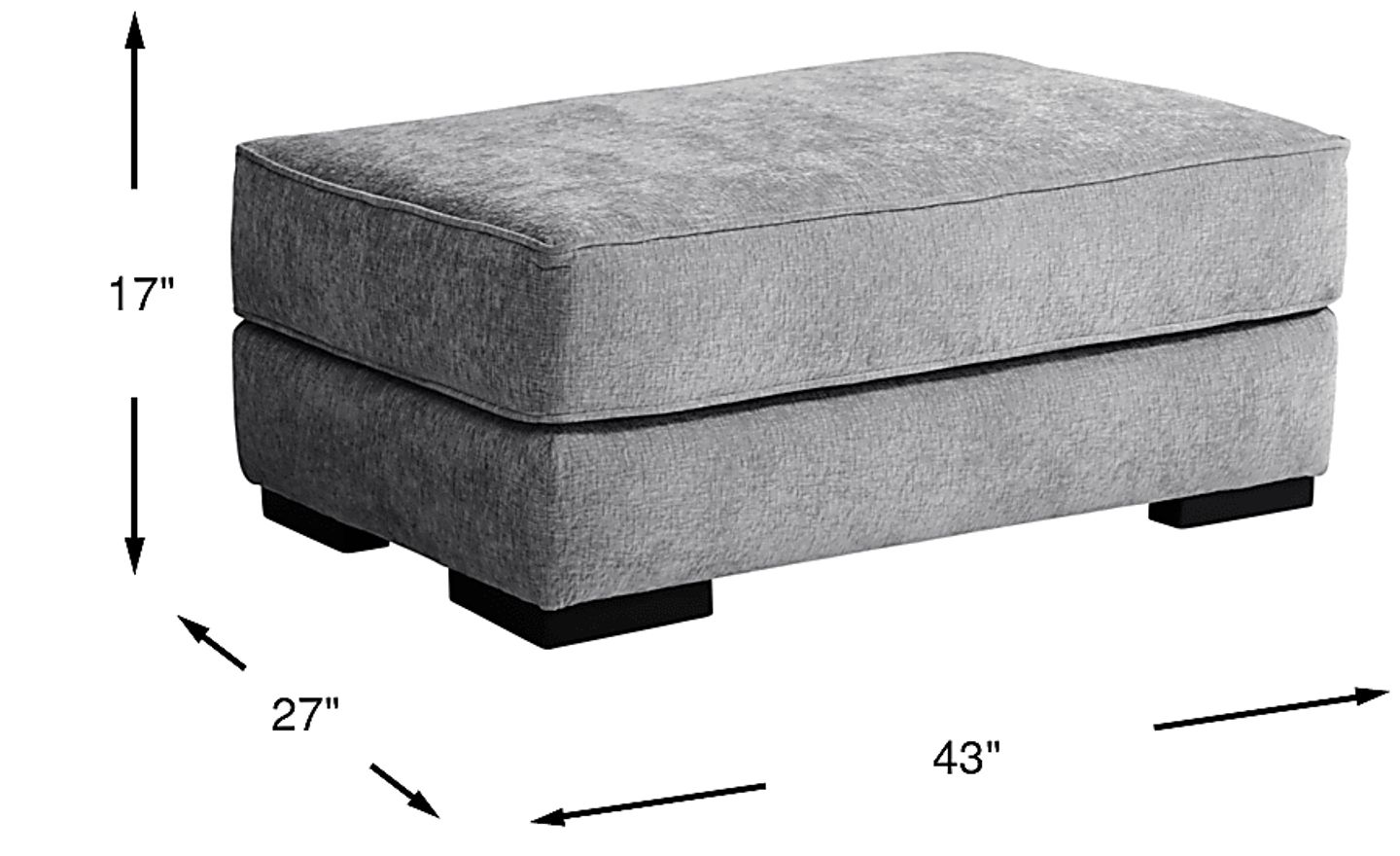 Clean, solid lines accompanied by the alluring pull of unremitting comfort make the Kinley ottoman the landing place for extra guests or legs when you're in need of a recline. Upholstered in plush woven chenille, this gray contemporary piece features block legs in a black finish that add an eye-catching contrast. Upholstery: 100% Polyester.