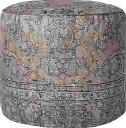 This Kiona pouf with a traditional, vintage-inspired design can be used as an accent, an ottoman, or extra seating in your living room or bedroom. The pouf measures 18"W x 18"D x 20"H and is machine-woven of easy-to-clean polyester.