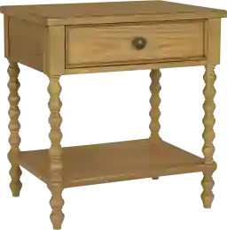 Complement your bedroom space with the Kiphen brown nightstand. This nightstand table features a camel oak finish to create a warm and inviting look. A single drawer and lower shelf provide plenty of space for your bedside essentials. The turned solid wood legs add an elegant accent, completing the farmhouse design. Customer assembly is required.