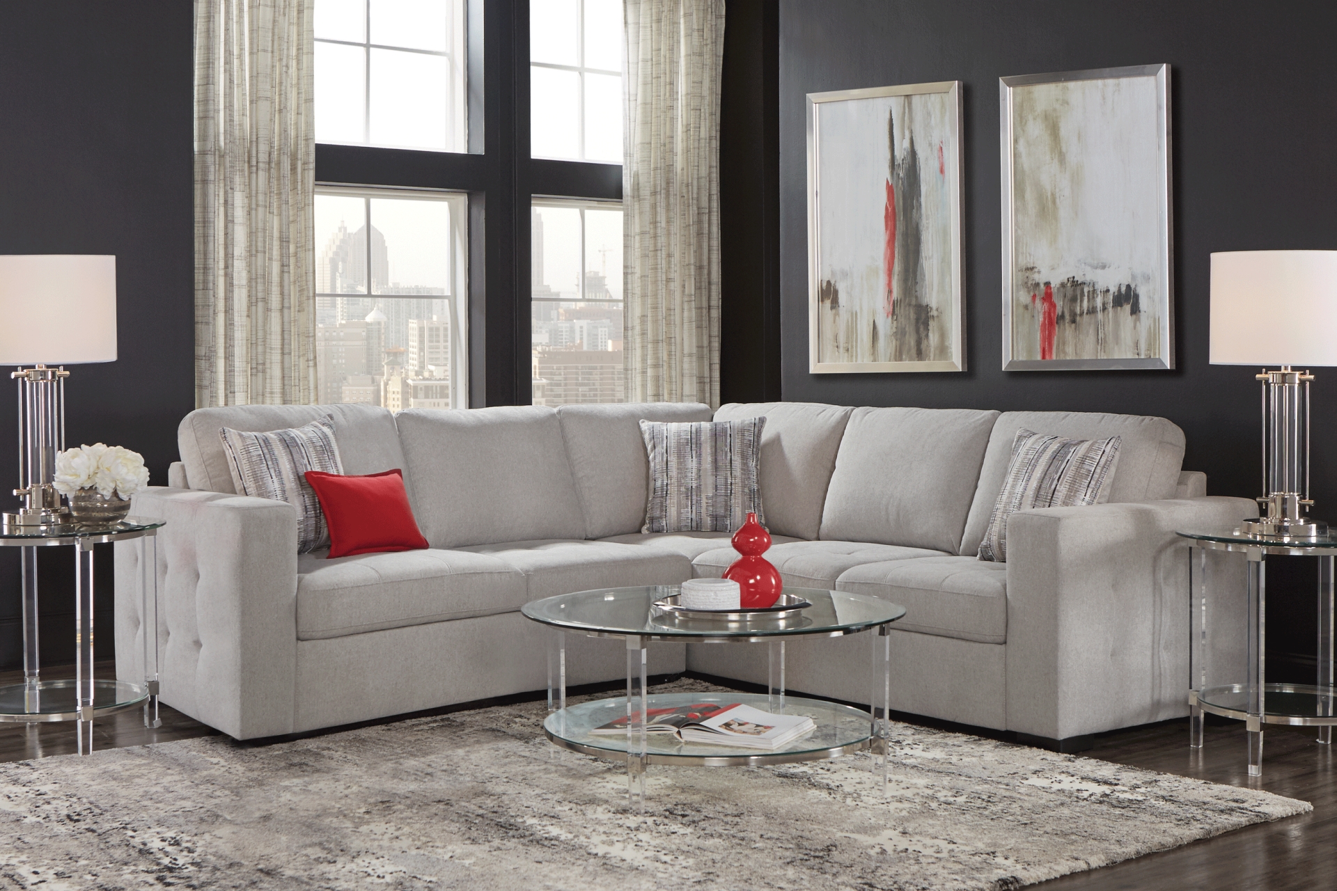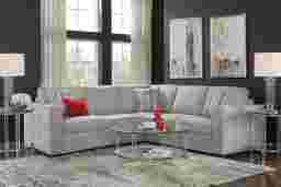 Create an ideal living room space with the Kirkwell sectional. This piece features a beautiful blue woven upholstery with tufting on the outside of the track arms create a tailored look. This sectional provides ample seating perfect for movie watching or catching up on your favorite show. Upholstery: 100% Polyester.