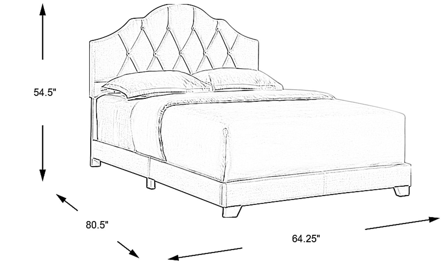 A beautiful camel back peak flows into subtle scalloped accents and diamond button tufting on the plush headboard of this all-in-one Kivett bed. Matching side rails and footed slats support your mattress and foundation, both required and sold separately, and offer a cohesive look. A low-profile footboard gives this bed a trend forward look, displaying your favorite linens and turning this tasteful piece into the stylish highlight of your bedroom. Foundation required. Mattress and foundation sold separately. Customer assembly is required.