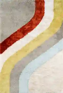 Inspired by the 1970's Scandinavian design, the stunning Knollcrest rug incorporates a retro style to any interior space. Hand-tufted with 100% polyester, this rug features a Novogratz design that displays a waves pattern in bold colors like ivory, red, yellow, gray and blue. For maintenance, professional cleaning is recommended.