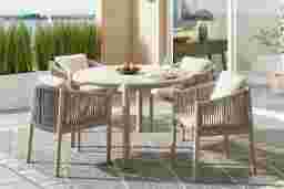 Koda Natural 5 Pc Round Outdoor Dining Set with Beige Arm Chairs