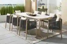 Koda Natural 9 Pc Outdoor Dining Set with Charcoal Arm Chairs