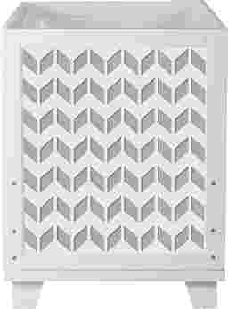 The Kolino white crib with chevron panels will make a playfully sophisticated addition to your new little one's nursery. The versatile design makes it easy to remove the theme panels to change both crib ends to a white finish.The beautiful handpainted white finish allows the wood grain to shine through and fits any room style. Even without the chevron panels it looks amazing. This crib is made from solid pine with a water based finish. The reinforced joinery ensures structural integrity while the solid wood construction provides strength and durability. The timeless design of the Kolino crib will keep your nursery in style for years to come.. Customer Assembly Required