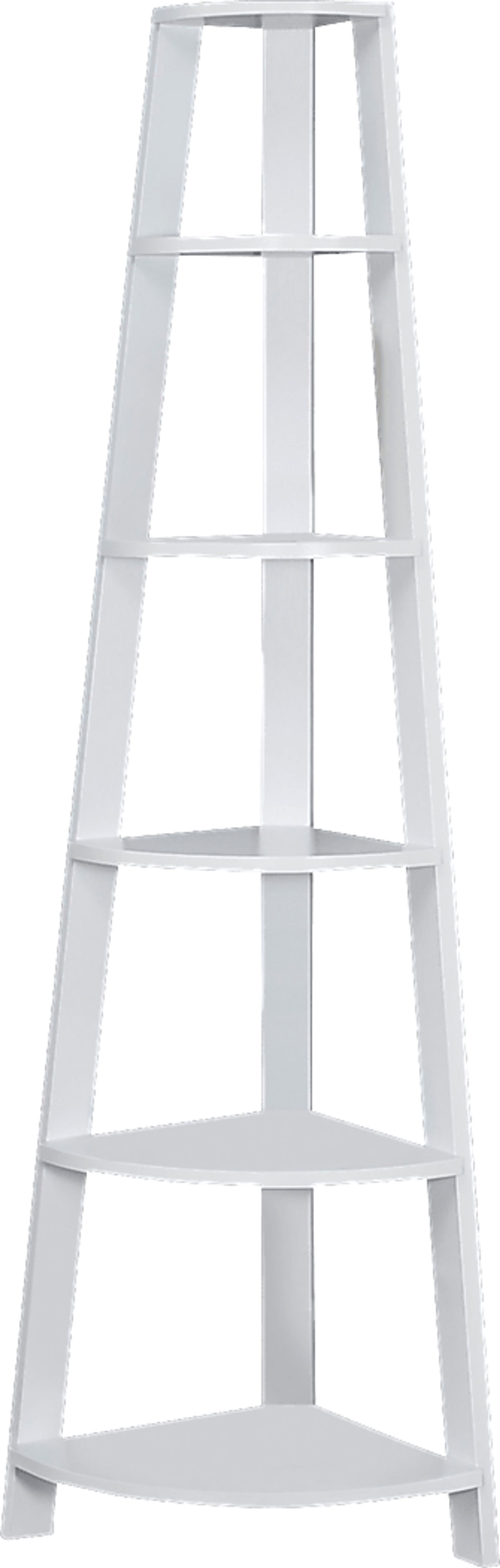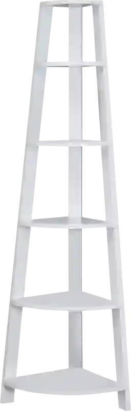 Add the perfect corner piece to any room with this chic white Korgan bookcase, complete with five fixed tray style shelves. This transitional designed bookcase blends well with any type of decor, providing additional display space without sacrificing style. Use it in a corner of your living room, family room, guest room, home office, or hallway for a tidy way to store your books and showcase your accent pieces. Tipping hardware is included for further stability. Weight Capacity 30lbs. Customer assembly required.