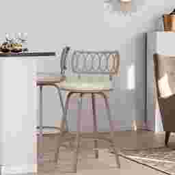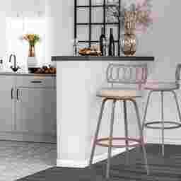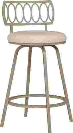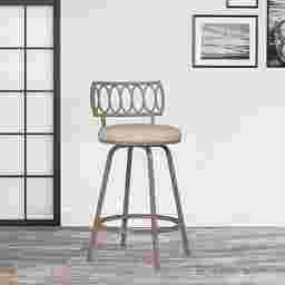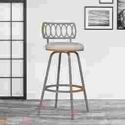 The Kornblum geometric circle back stool blends a bold and contemporary design with uptown style. This stool has an added feature of leg extenders, you can use them to have a bar or counter height stool. You get to pick what works best for your space! Finished in a gold champagne with a cream fabric upholstery, this metal stool complements any kitchen or bar scheme. Converse easily and comfortably with the 360-degree swivel design and circular footrest to support your feet. Customer assembly is required.