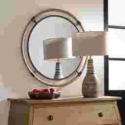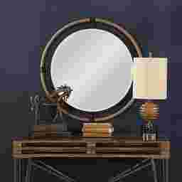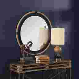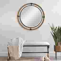 The Krifan forged iron mirror frame is finished in a textured rust black that's wrapped in natural rope bringing a coastal feel to any room. The round mirror is surrounded by a generous 1 1/4 bevel. Mounting hardware is included. Customer assembly is required.