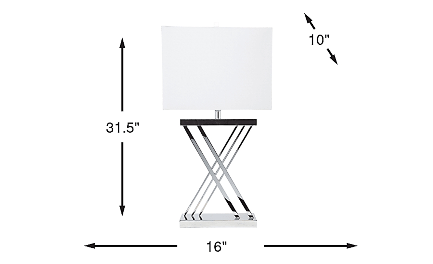 Possessing a refined modern look, the Kriftel table lamp is a work of art. Its silver-finished base is designed with crossed pillars that form an X shape. The white drum shade suits any color scheme or decor style. Featuring a three-way switch, this lamp accommodates up to a 150-watt bulb (not included).