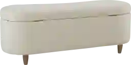 Introducing the Kristencreek cream storage bench, a stylish and versatile piece that fits seamlessly into any room of your home. Featuring clean lines and a curved front, it also has a straight back that fits snugly against a wall or bed. The upholstered bench sits atop solid wood legs, providing both comfort and style. Customer assembly is required.