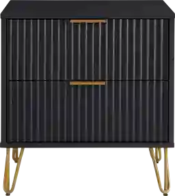 To lean into this piece's modern glam aesthetic, we suggest coordinating with other metallic and high-contrast elements. The vertical ribbed drawer fronts provide a unique texture that pairs beautifully with a gold-based table lamp to mirror the hardware. Our stylists often recommend balancing the bold black finish with soft textures—such as a plush area rug or velvet bedding—and pops of color like emerald green or navy to create a sophisticated, curated space.
