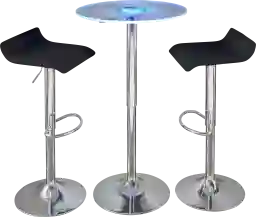 Be enchanted by the etched swirls in the acrylic top that color-phase of the Krystl Black Adjustable 3 Pc Bar Set. This acrylic bar table features visible etching with multi-colored LEDs that phase between red, blue and green, giving them glowing edges. This table is paired perfectly with the barstool which features a cool wave-like faux leather seat. Both the stools and table are height adjustable Wherever you place this bar set, it will be sure to catch anyone's eye. Includes adapters that plug into base. Customer assembly required.