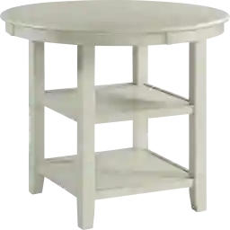 The Kudzu counter height dining table will look fantastic in your dining room This table is ideal for small space living. The round table top lets you move around with ease, while the extra shelf in the base lets you store away anything you might need during your meal. The bisque finish is striking and will look great with any decor you might have. The kicked out legs definitely add extra style to this already stunning piece. The transitional design of this piece will easily become a staple in your home year after year. Customer assembly is required.