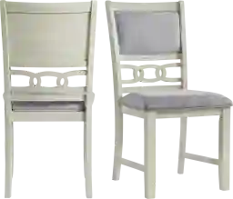 The Kudzu side chair set will look fantastic in your living room This set includes two side chairs that will look great around your dining table. This dynamic duo features an upholstered seat and back that will give you ultimate comfort while you enjoy your meals. The back of the chair also features a cool, link design that instantly adds flair to this already stunning set. The bisque finish pairs beautifully with the gray fabric and a combination you'll enjoy year after year. Add this chair set to your home today for a look you'll enjoy day after day Customer assembly is required.