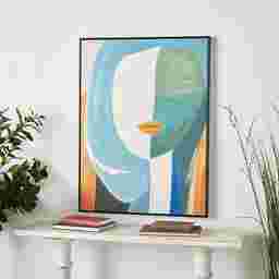 Express your individuality with the Kueli framed wall art, a vibrant masterpiece designed to transform your space with free-spirited charm. Crafted from a refined blend of iron, plastic, pine, and canvas, this piece combines durability with striking artistry. Its brushed finish bursts with bold hues of orange, blue, white, and teal, bringing life and energy to any wall. Impressionist-style brush strokes and a sleek black frame add depth and sophistication, making it both playful and elegant. Measuring nearly 40 inches tall, the Kueli wall art creates a powerful focal point in your living room, entryway, or office. Customer assembly is required.