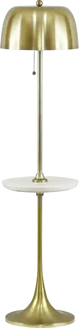 Experience the epitome of European interior style with the Kulick Post Brass Floor Lamp. Heavily influenced by leading trends, its brushed brass base and shade exude sophistication. With a marble side table attached, this lamp seamlessly merges function and style, adding an uber-chic ambiance to any space. Partial assembly may be required.