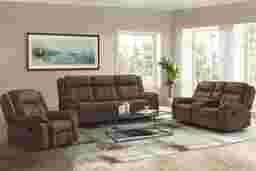 For indulgent seating your family will love, choose the Kusel reclining sofa. Upholstered in soft, padded Microfiber, this piece is rendered in a versatile brown color. Two of its chaise-style footrests recline with easy-to-use handles on the sides for immediate relaxation. Pillowtop arms give this sofa an extra touch of comfort, while tufting detail lends a tailored look. Upholstery: 100% Polyester