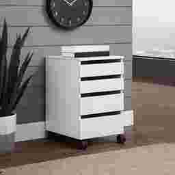 The Kyllen is a 4-drawer mobile pedestal features easy to access and functional drawer storage. Featured in 3 stylish finishes, this product coordinates with any office décor. The heavy duty and locking casters allow the cabinet easy mobility when in use and the 24" height allows easy storage under most desks. This cabinet utilizes high quality epoxy coated steel drawer slides for long lasting smooth operation. Customer assembly is required.