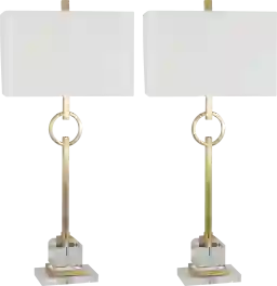 Absolutely. The "Kyra Club" set utilizes a geometric novelty design that serves as a functional art piece. The combination of gold, crystal, and crisp white linen follows a sophisticated color palette that adds warm contrast to neutral, navy, or gray contemporary interiors. Placing the set of two symmetrically on a TV console or behind a sofa helps to "anchor" the room, providing a polished and cohesive layout.